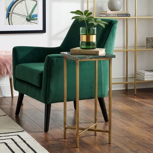 Brooklyn Marble Side Table - Green/Gold | End Table, Occasional Table, Small Table - Made of Marble, Made of Iron