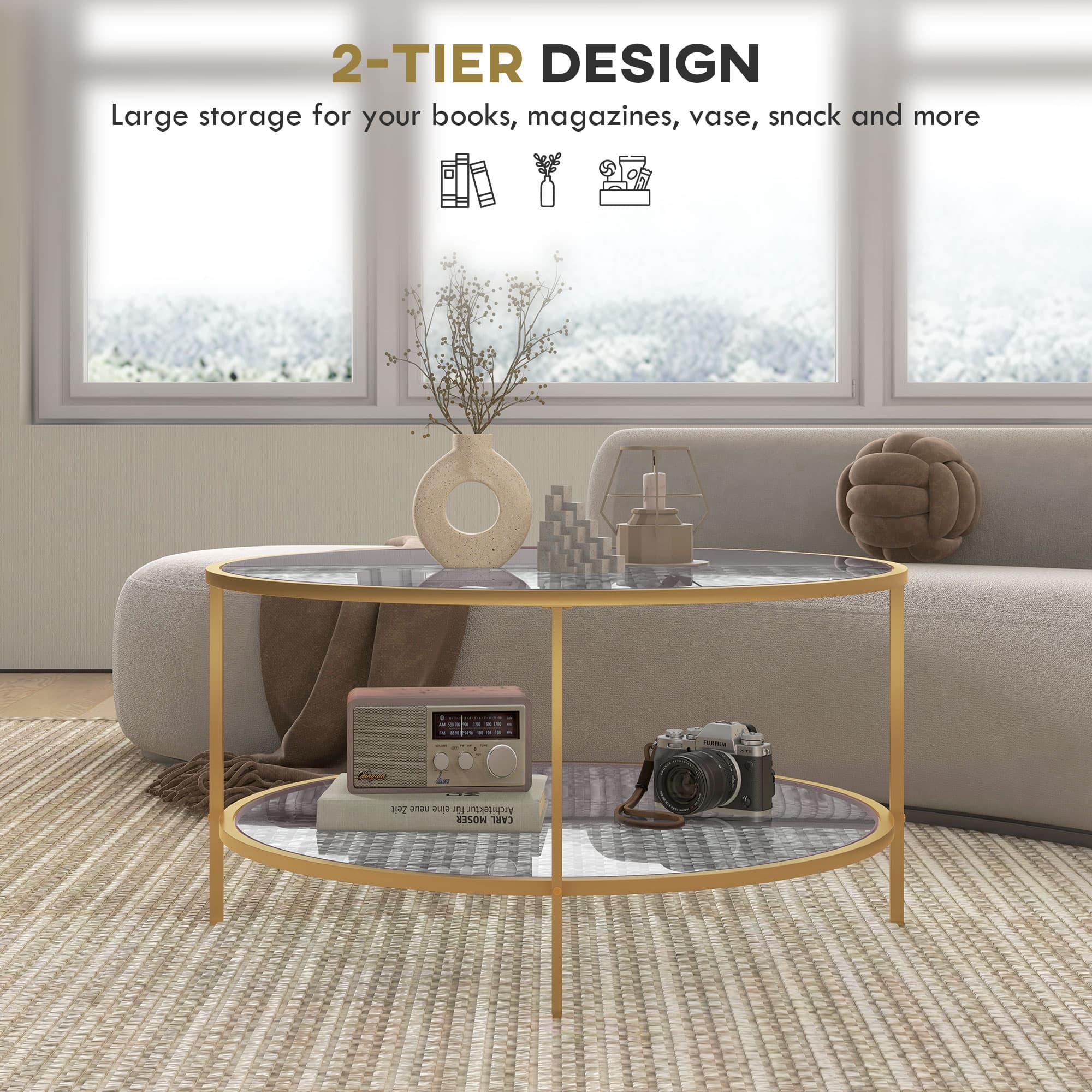 HOMCOM Modern 2-Tier Round Side Table with Tempered Glass Top Steel Frame Sofa End Table for Living Room Small Accent Furniture | Aosom.com
