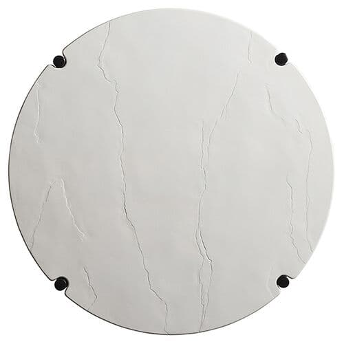 The top of this outdoor cocktail table mimics honed limestone in both appearance and texture, while being easier to maintain. Its gently flared legs provide an elegant touch.