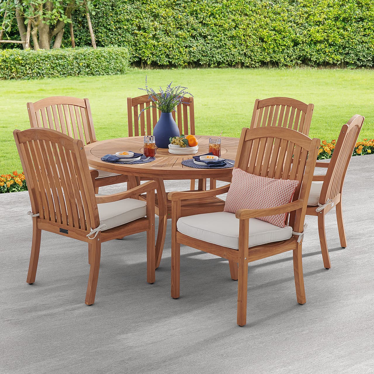 Eastchester Teak with Cushions 7 Piece Dining Set + Bristol 59 in. D Table (Canvas Granite)