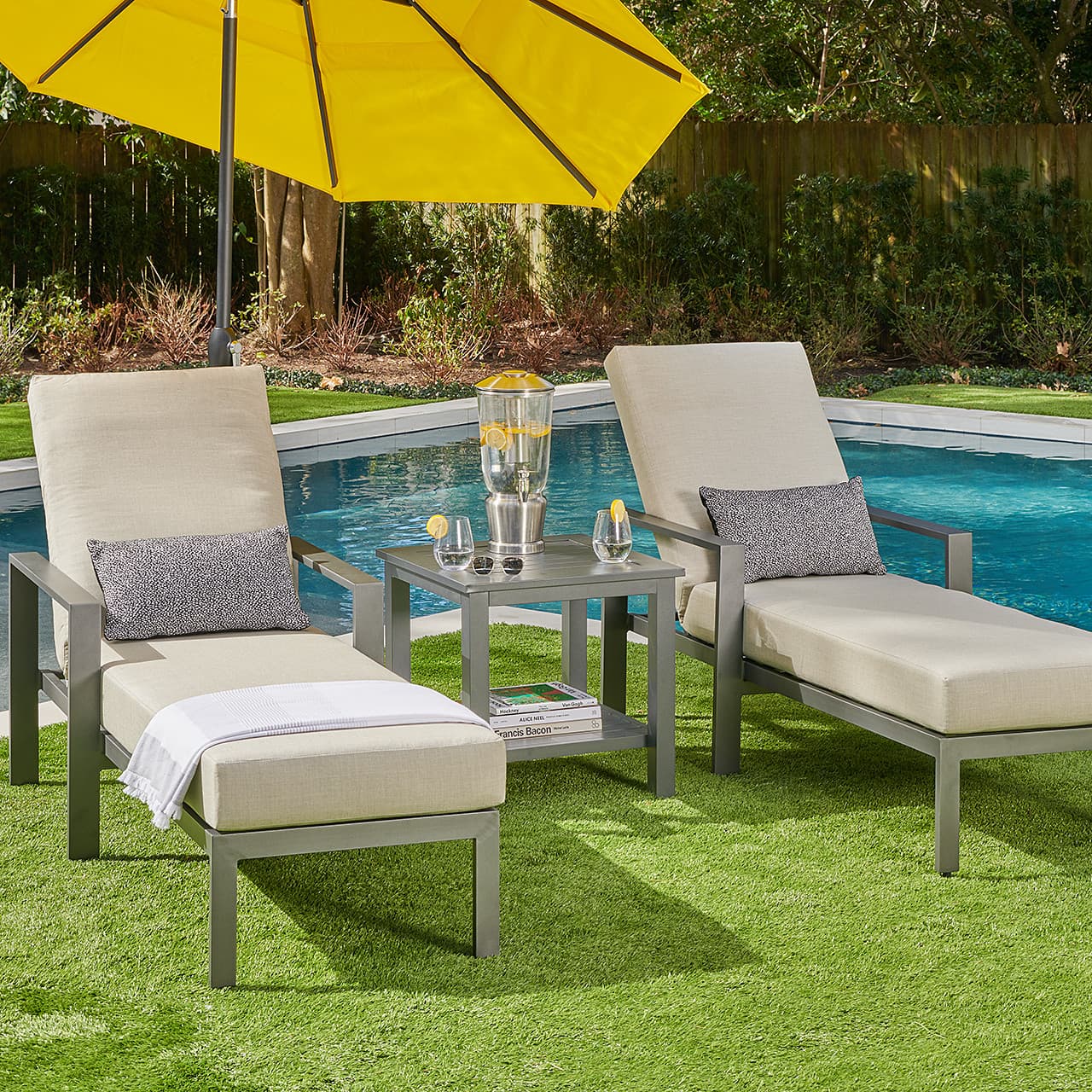Soho Slate Grey Aluminum with Cushions 3 Piece Chaise Lounge Set + 22 in. Sq. End Table (Spectrum Dove)