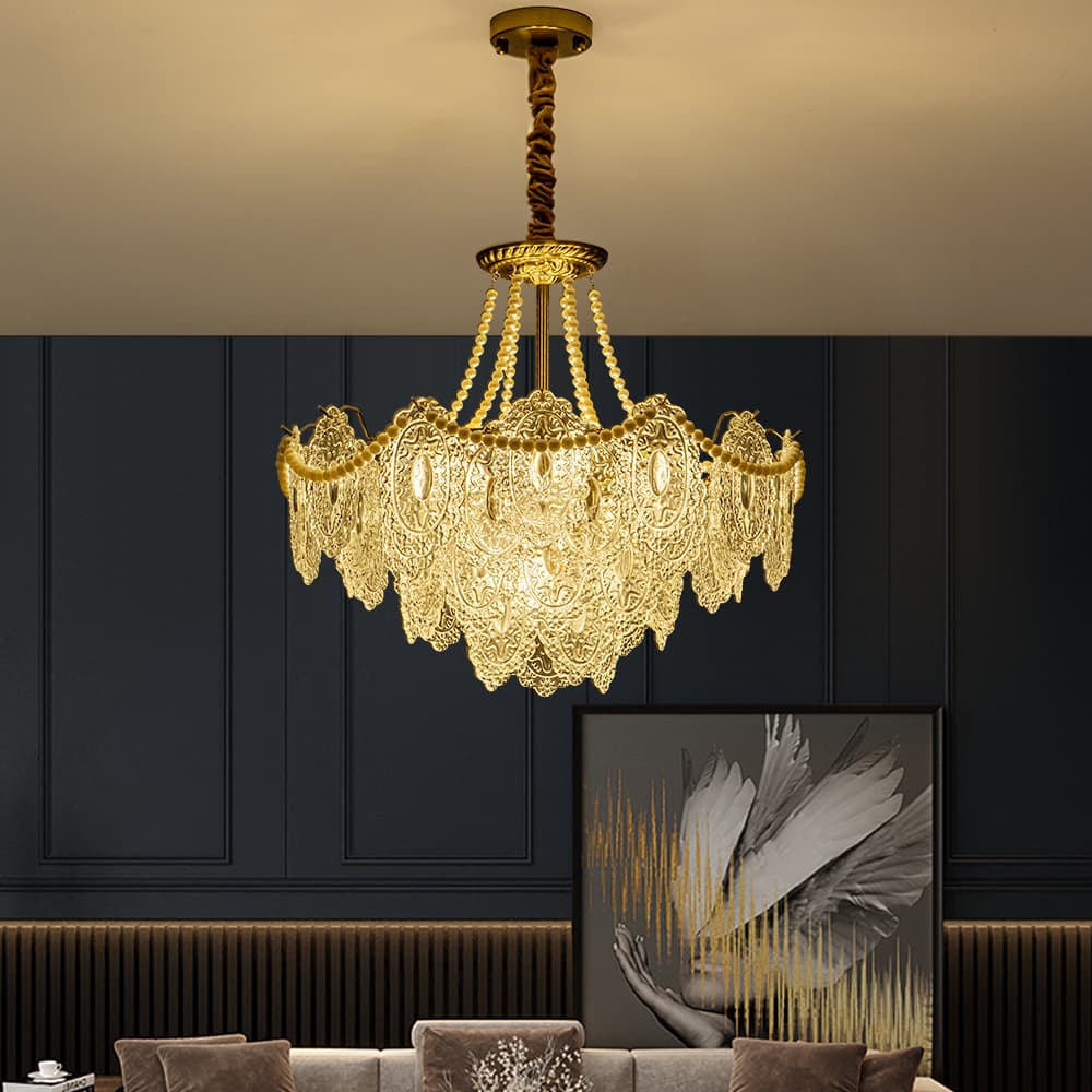 Art Deco 9-Light Tiered Glass Gold Chandelier Pearl Pendant Ceiling Light for Livingroom