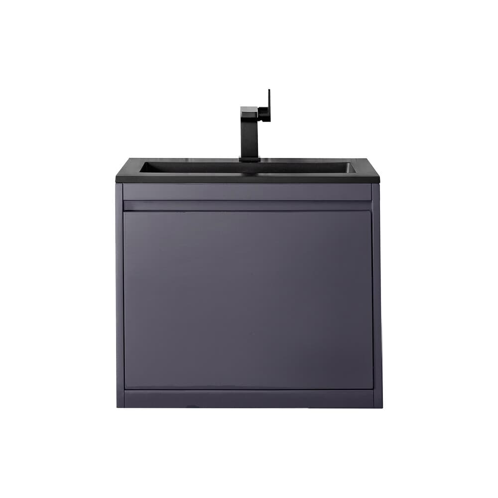 James Martin Milan 23.6" Single Vanity Cabinet, Modern Grey Glossy, Matte Black