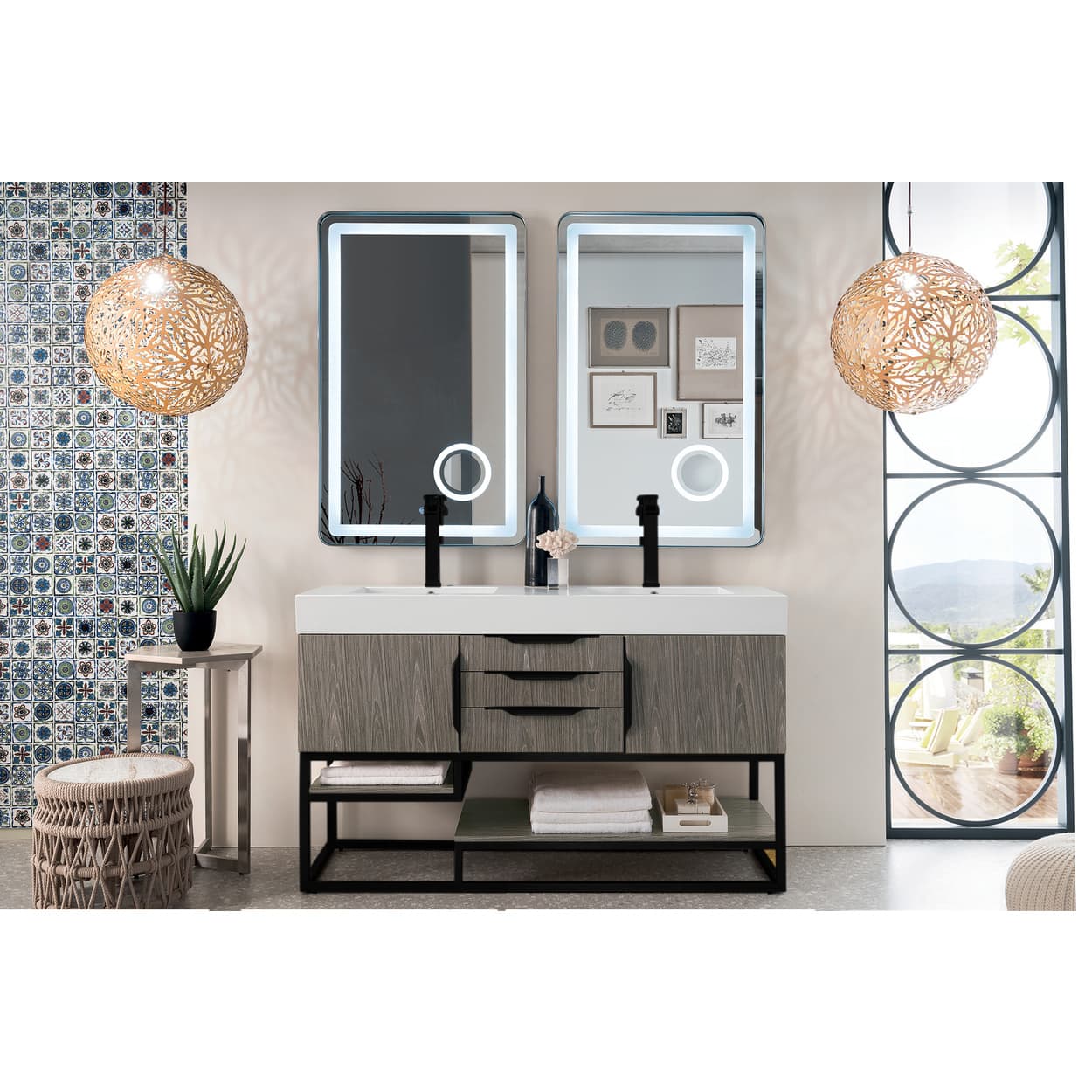 James Martin Columbia 59" Double Vanity, Ash Gray, Matte Black