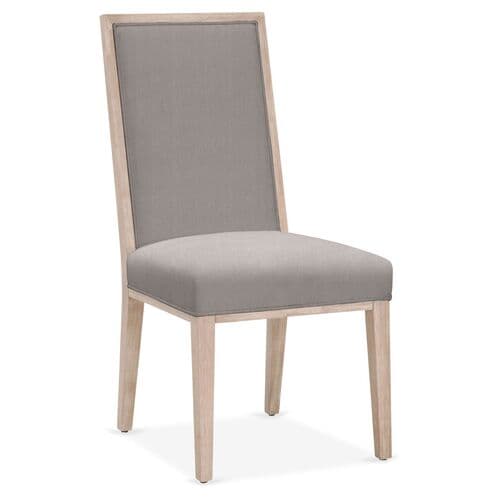 Featuring exposed rubberwood frames, these side chairs are in a natural gray shade and upholstered with durable, stain-resistant fabric.
