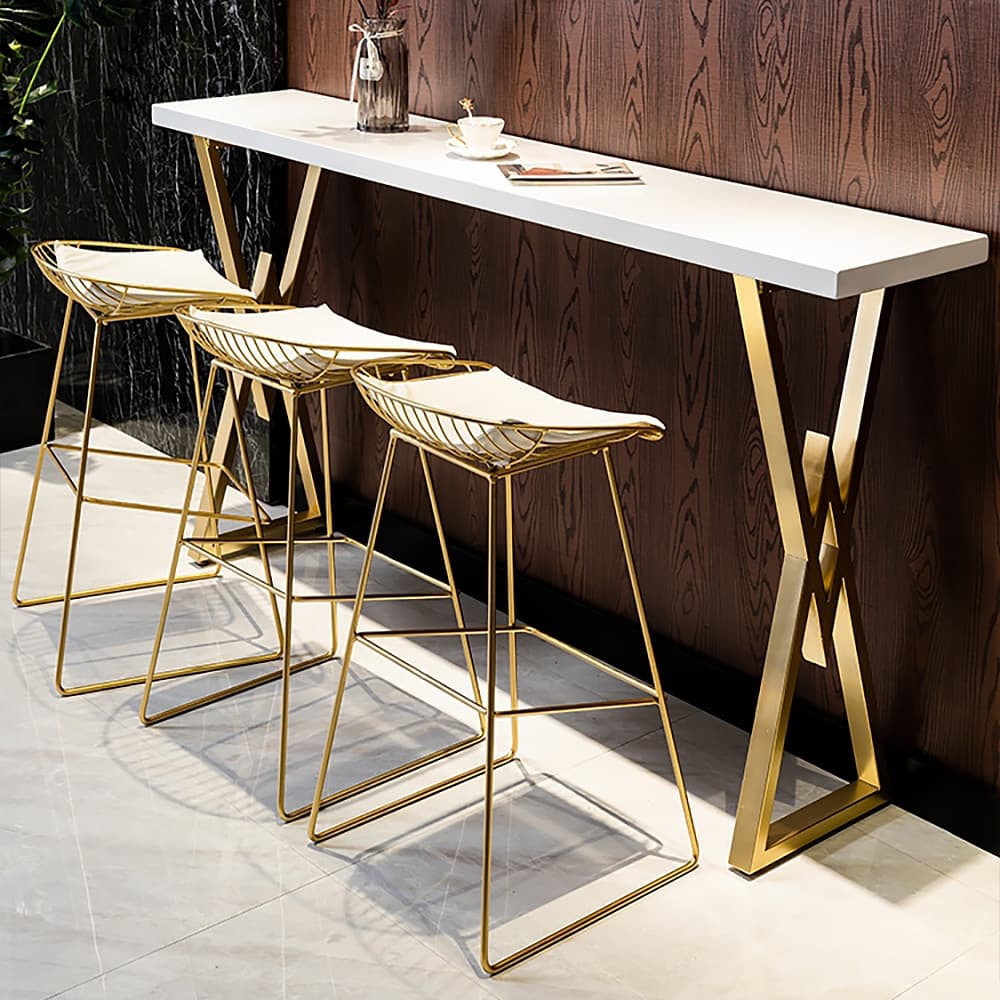 Modern White Kitchen Rectangular Bar Height Dining Table Wood Breakfast Pub Table with Gold Base