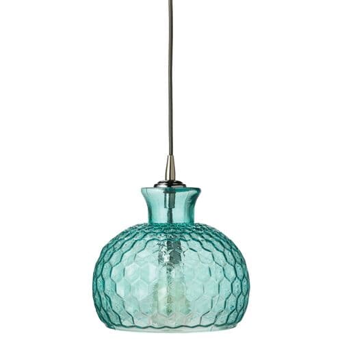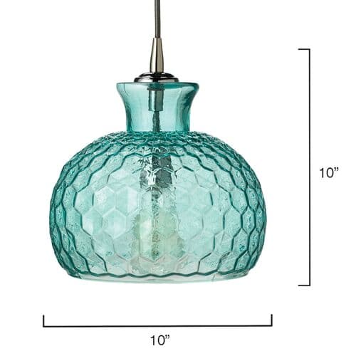 Enhance your space with this pendant's aqua glass shade featuring a honeycomb pattern for added shine and dimension. Requires hardwiring for installation.