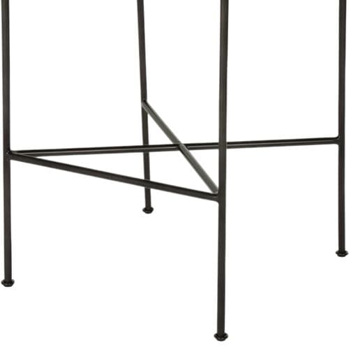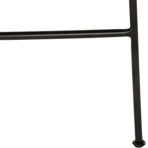 Featuring a casual elegance, this barstool is constructed with a distressed, ebonized iron frame that includes two cross stretchers. The seat and back are adorned with black faux-leather, enhancing its refined look.