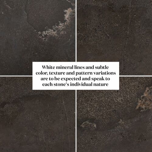 This occasional table combines texture and sculpture with a bluestone top and oak base, valued for its strength and unique grain. The oak is joined by iron finished in brushed gunmetal.