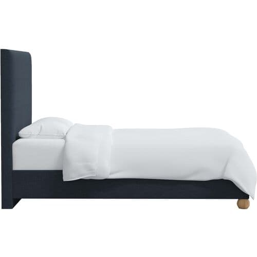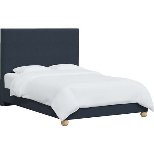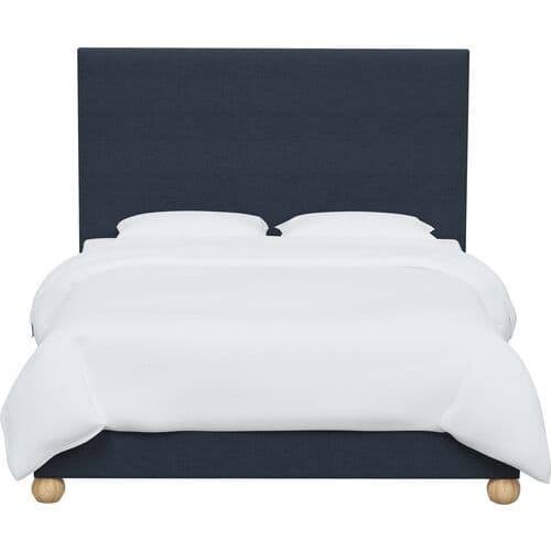 Featuring a substantial headboard and rails, this bed's linen-like upholstery offers timeless elegance suitable for any bedroom style. Bun feet add a distinctive touch. Crafted in the USA, the padded headboard ensures comfortable TV watching or reading.