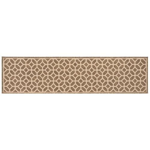 Durable and stylish with a geometric pattern, this rug suits porches, patios, entries, or dens. It's nonshedding and easy to clean, even washable with a hose. The latex backing enhances its durability, and it's Oeko-Tex Standard 100 certified, ensuring it is free from harmful substances.