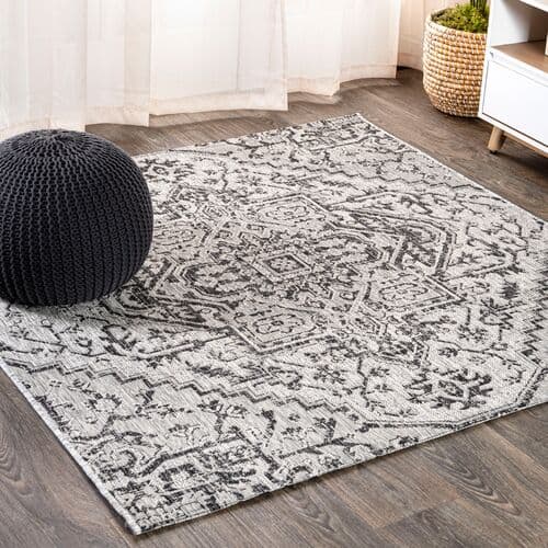 Combining antique Persian carpet inspiration with modern materials, this polypropylene flat-weave rug is stylish enough for indoor use while being robust enough for outdoor conditions. To avoid slipping, a rug pad is advised.