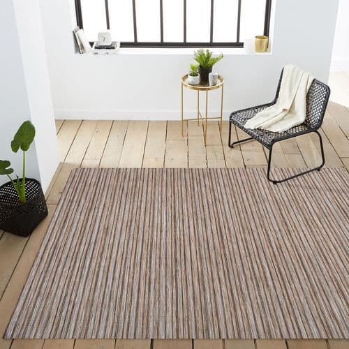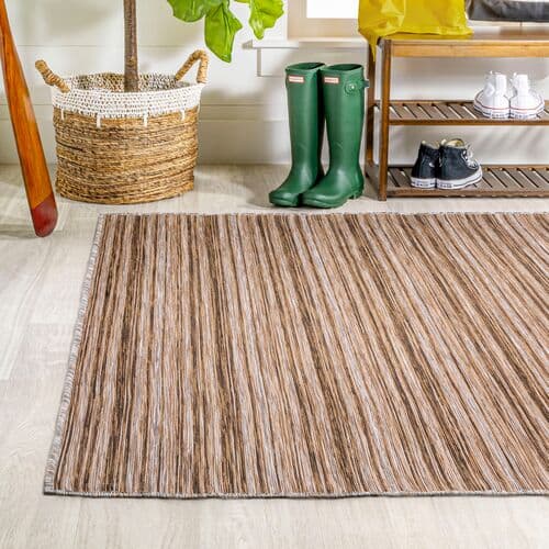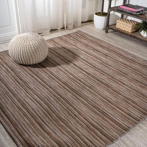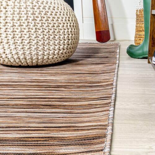 Heathered stripes in this flat-weave rug create a sense of depth and artistic charm. Made from fade-resistant, nonshedding polypropylene, it is perfect for high-traffic areas indoors and outdoors. A rug pad is suggested to prevent slipping and prolong the rug's lifespan.