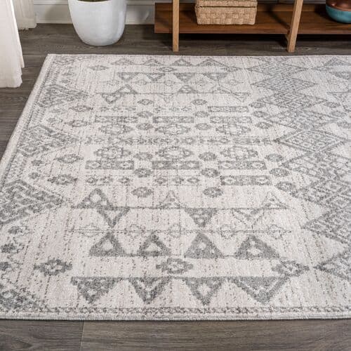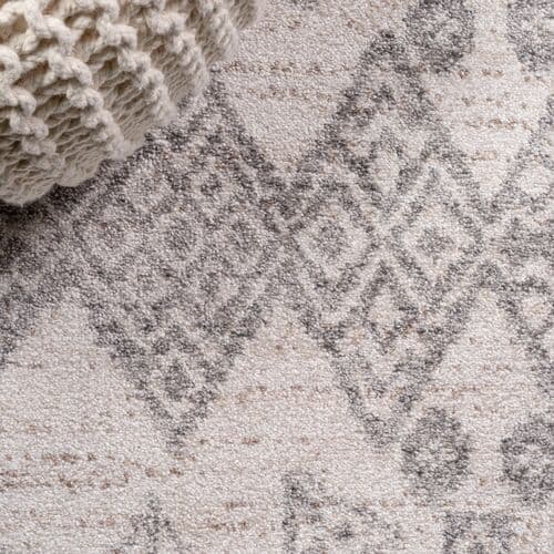 Berber-inspired motifs enhance the design of this rug, crafted from fade-resistant, nonshedding polypropylene. A rug pad is advised to prevent slipping and prolong rug life.