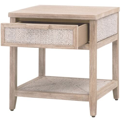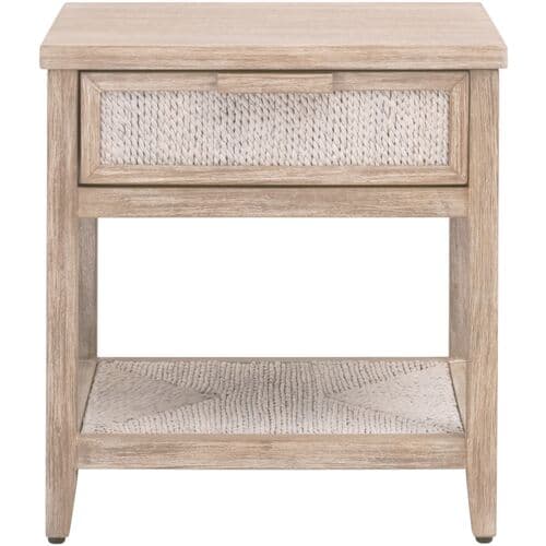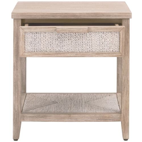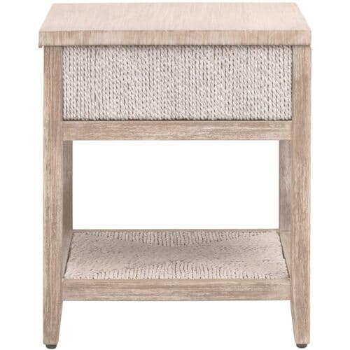 Huck 1-Drawer Nightstand - Natural Gray/White Wash Rope | Night Table, Bedside Shelf, Offers Convenience, Storage, Organization