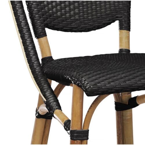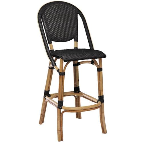 Sika Design's Sofie Barstool offers a refined look with its rattan frame and polyethylene bindings. Inspired by Parisian bistro stools, these handmade chairs feature sweeping arms, waterfall seats, and sturdy footrests for lasting comfort. Made from solid Malacca cane rattan, the frame supports a woven ArtFibre™ back and seat. This durable polyethylene material is designed for regular use. These stackable stools are ideal for indoor bar or counter seating at home or in commercial environments and require minimal maintenance.