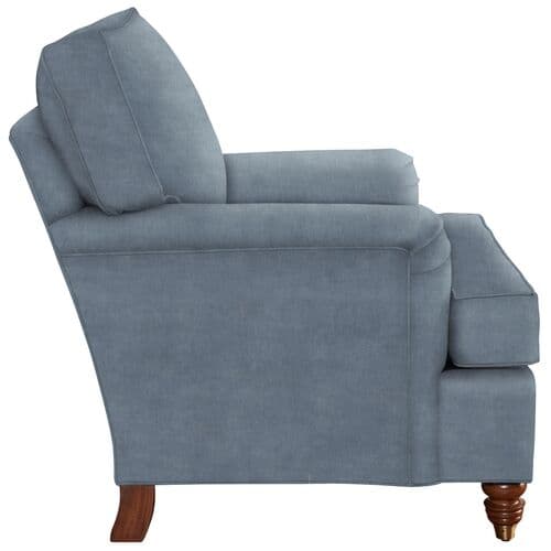Exclusive to One Kings Lane: A classic English arm chair with elegantly turned wood legs. Upholstered in Crypton, a high-performance, eco-friendly velvet fabric, which is resistant to stains, spills, bacteria, and mold. Features an engineered hardwood-laminate frame, an eight-way hand-tied suspension system, and a spring foam cushion with down-proof ticking for enduring comfort and support. Each chair is handcrafted by skilled artisans in High Point, NC, backed by a lifetime warranty on the frame and suspension, with a limited lifetime warranty on the cushion.