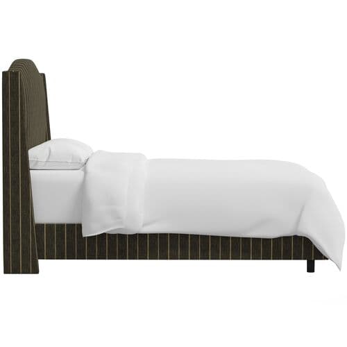 Cole Wingback Bed - Pinstripe - Handcrafted - Gray, Mattress, Box Spring Required, Padded Headboard | Upholstered bed, Tufted Bed, Mattress and Box Spring Required
