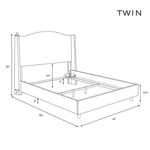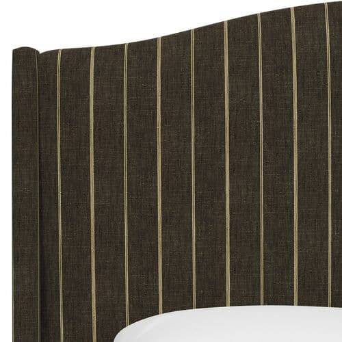 The Cole Wingback bed showcases elegance and refinement with its camelback shape and angled wingbacks. Upholstered in a striped cotton-linen-blend fabric, the cushioned headboard offers comfort for reading or watching TV. Handcrafted in the USA, it requires a mattress and a box spring, with a suggested box spring height of 9 inches.