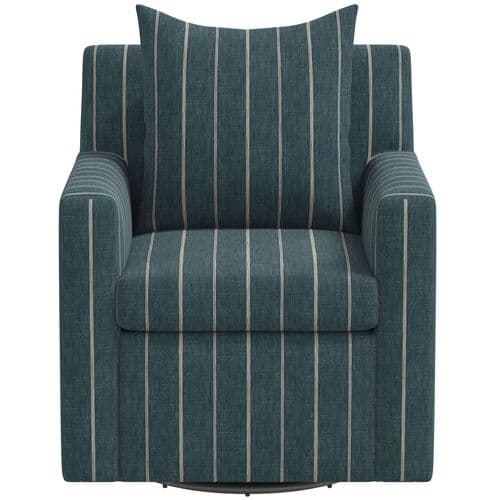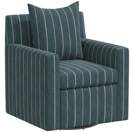 Willa Swivel Chair - Pinstripe - Handcrafted | Rotating Chair, Pivot Chair, Spin Chair - Blue - Sturdy, Comfortable