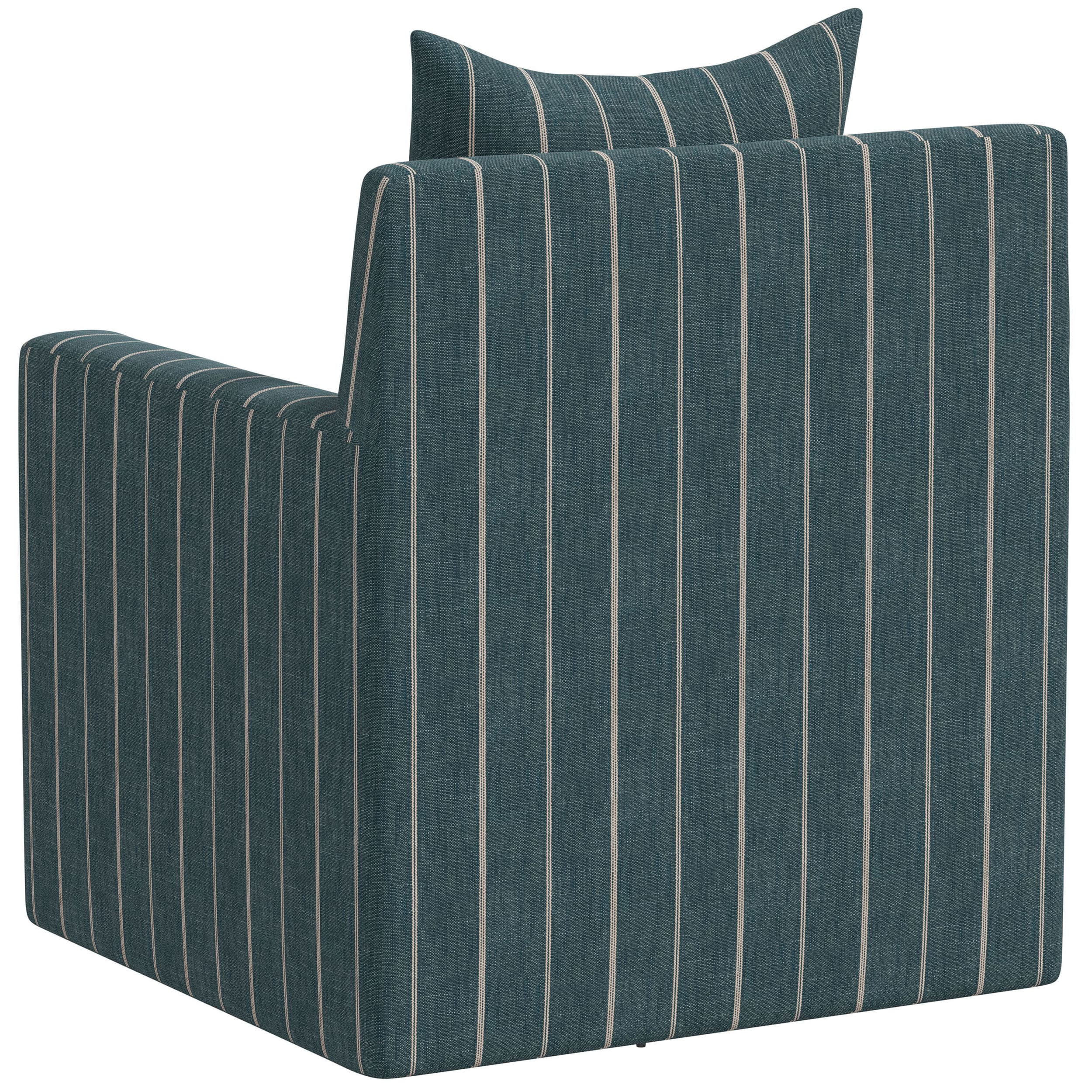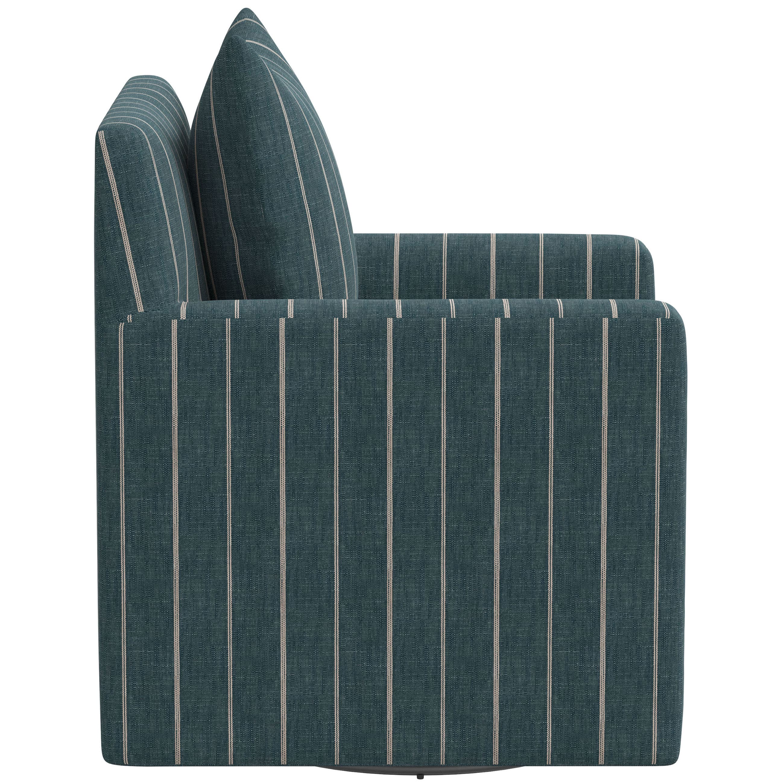 Experience classic comfort with this swivel armchair, featuring sleek curves that offer inviting comfort supported by generous cushions. Crafted in the USA, it includes a concealed swivel base for 360-degree rotation in a functional design. Hand-upholstered in a cotton-linen blend with stripes, it is sure to be your go-to chair for relaxation.