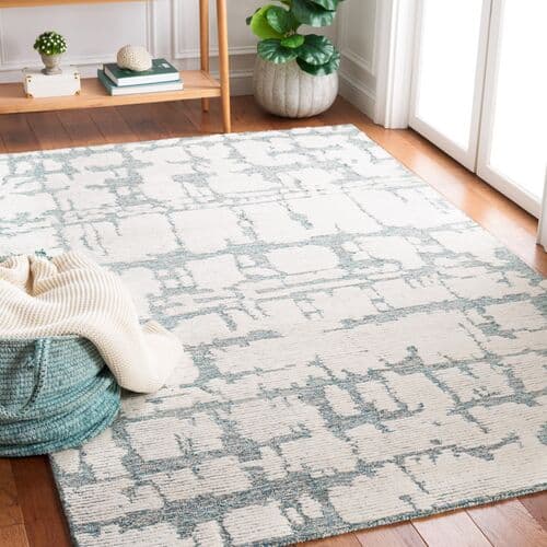 This rug, hand-tufted from wool and cotton, offers both remarkable durability and a soft feel. Its two-tone abstract design adds richness to any room. Use a rug pad to reduce slipping and extend the rug's life.