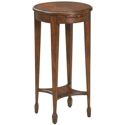 Crafted from selected solid woods and premium veneers. Includes a pull-out shelf with antique brass-finished hardware. Ideal for use next to an armchair or as a bedside table, featuring a lower shelf for extra storage.