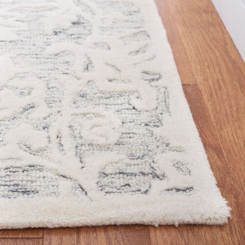 The elegant floral design is enhanced by the subtle high-low texture of this hand-tufted wool rug. It's advisable to use a rug pad to prevent slipping and prolong the rug's lifespan.