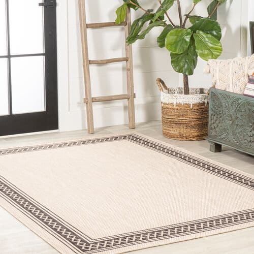 A diamond border adds timeless finesse to this indoor/outdoor polypropylene rug. A rug pad is recommended to help prevent slipping and extend the life of the rug.