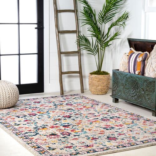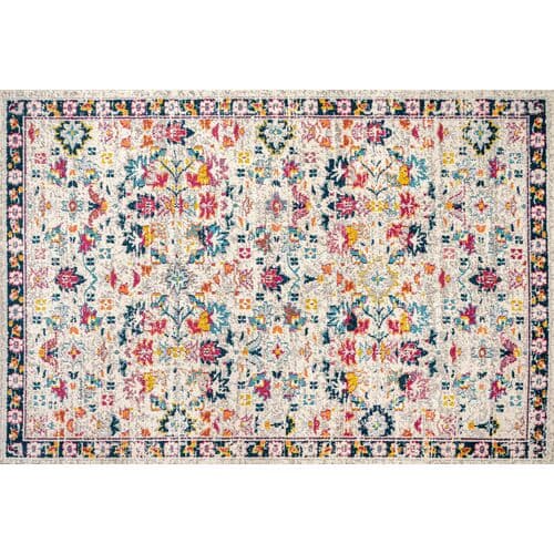 Inspired by antique Persian carpets, this polypropylene rug features an intricate floral design and intentional abrash for a vintage look. Its vibrant colors bring a modern twist, making it perfect for contemporary spaces. Use of a rug pad is advised to prevent slipping and prolong the rug's lifespan.