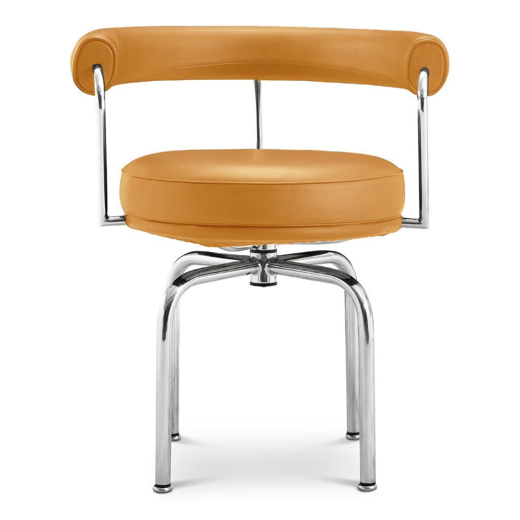 Swivel Chair is both practical and visually pleasing. The frame is constructed from stainless steel for enhanced durability. The surface is polished to resist rust and chipping. Featuring genuine aniline leather for the backrest, the chair is elegantly finished.