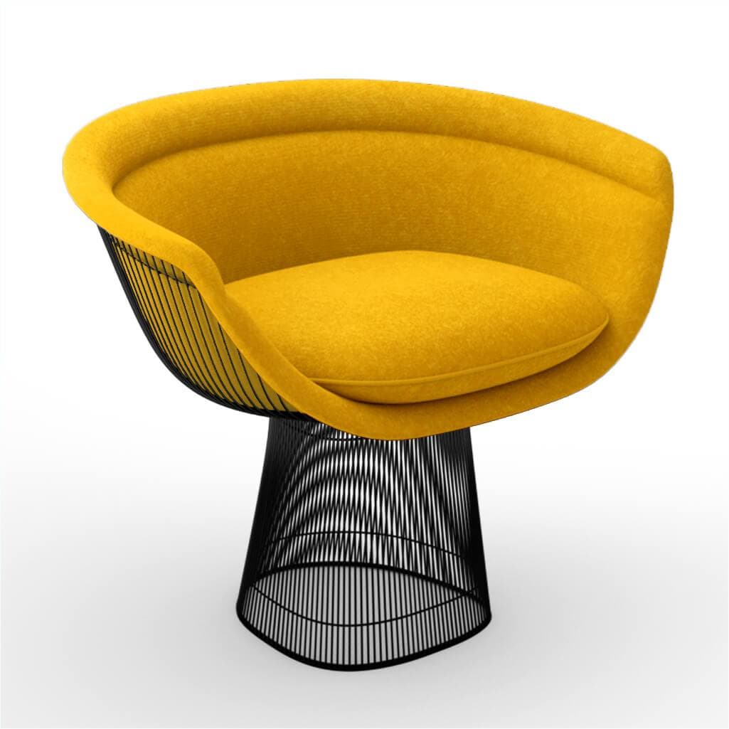 Warren Platner Lounge Chair - Gun Metal Black Base Boucle Wool-Yellow