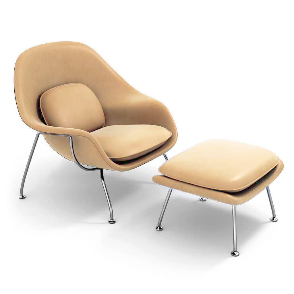 Womb Chair & Ottoman - Chrome Legs Vintage Leather-Cashew