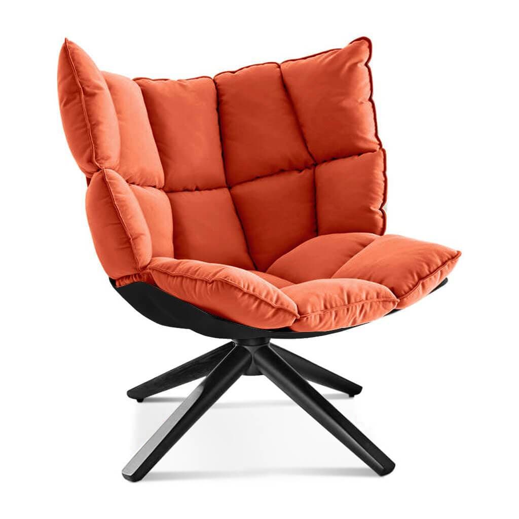 Patricia Urquiola designed the Husk Chair to convey both mental and physical comfort. The chair features a rigid Hirek body enclosing a cushion divided into portions. This unique design ensures both aesthetic appeal and functional comfort in any setting.