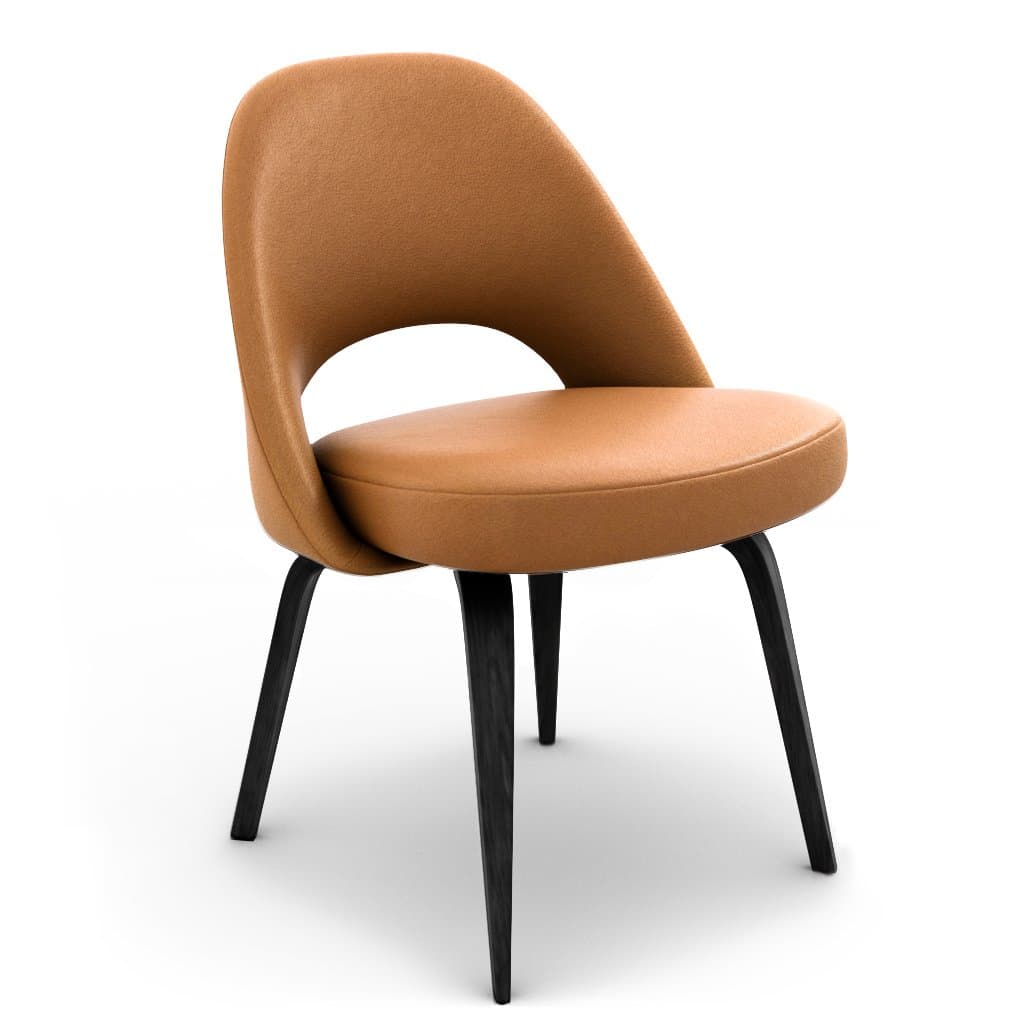 Saarinen Executive Leather Side Chair - Wood Legs Top Grain-Tan / Black Stain