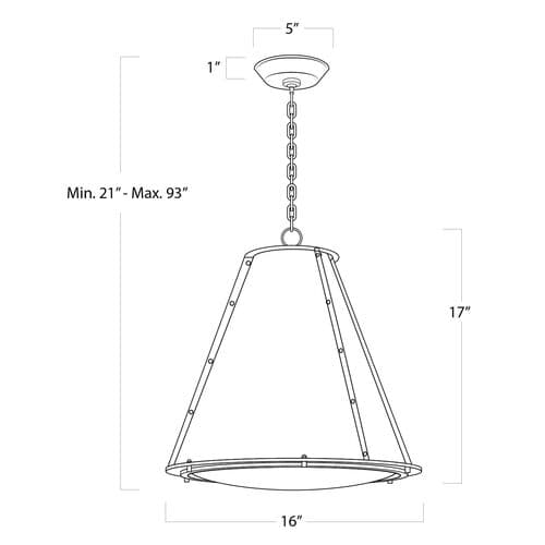 size: 17H x 16W in; min hanging 21 in; max hanging, 93H in