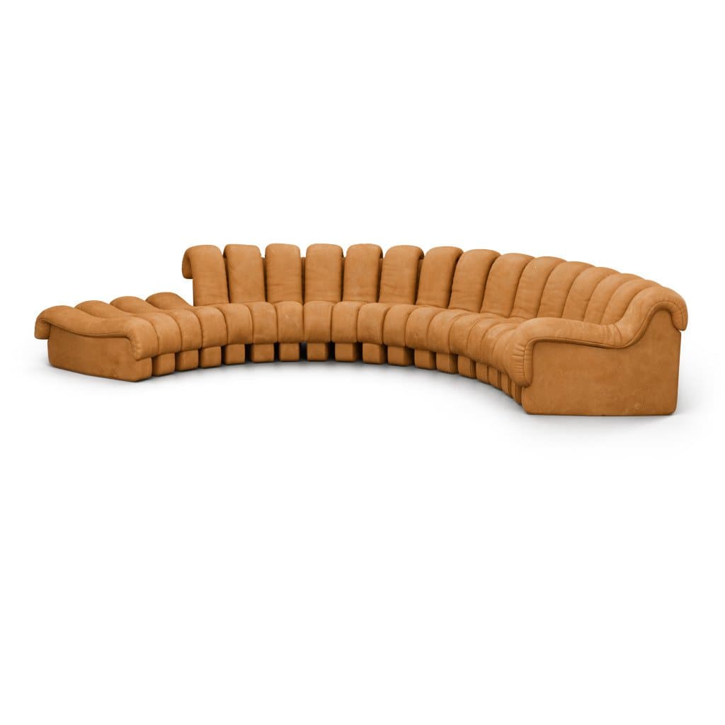 The DS 600 'non-stop' sofa, designed by Ueli Berger in 1972, is named after a mythical alpine creature, the Tatzelwurm. The sectional sofa consists of narrow modular elements that can be extended to create versatile and seemingly endless shapes.
