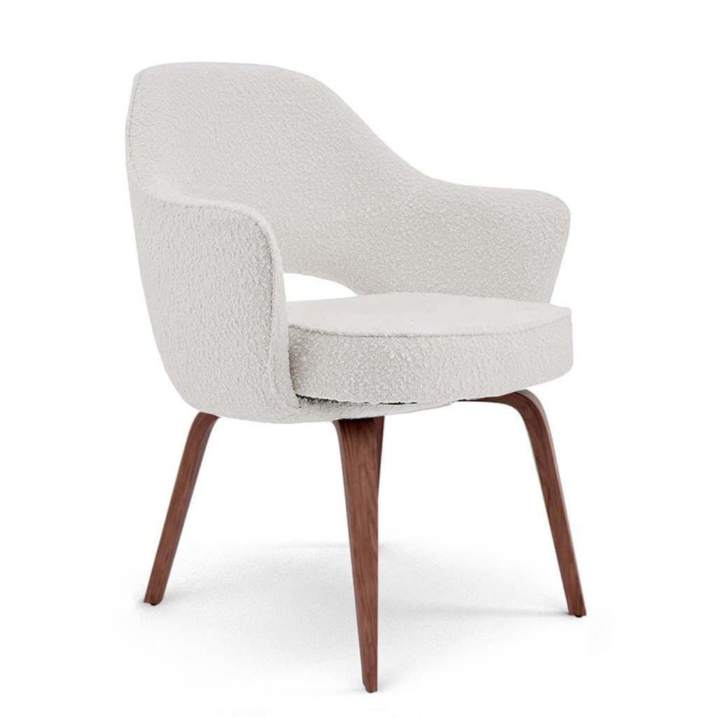 Saarinen Executive Armchair - Wood Legs Classic Boucle-Snow White / Walnut