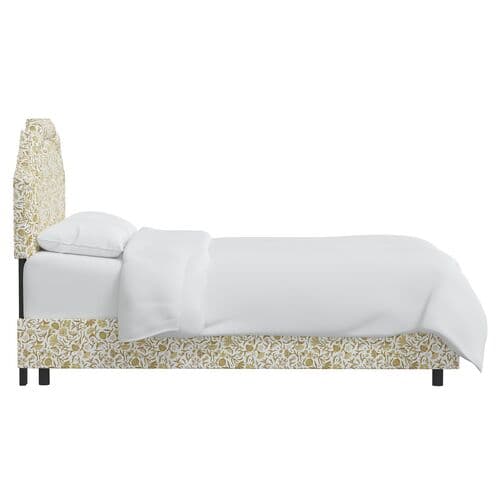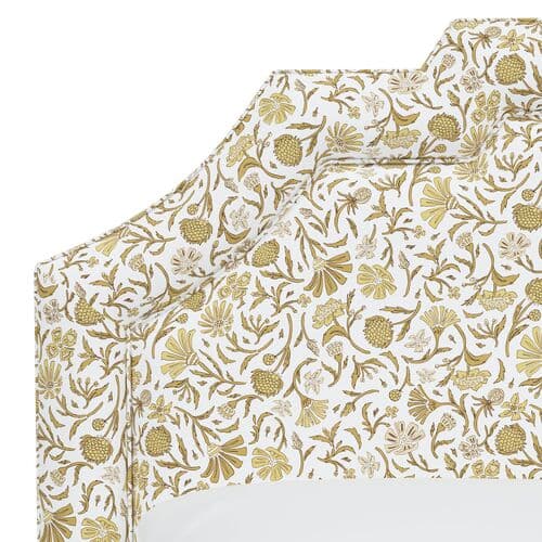 Exclusive to One Kings Lane: The floral upholstery, reminiscent of classic block prints, complements this bed's elegant silhouette. What's more, the amply padded headboard is ideal for those who like to read or watch TV in bed.
