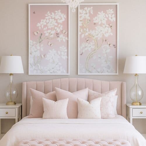 Dawn Wolfe - Chinoiserie Diptych with Butterflies I - Dawn Wolfe Design - White