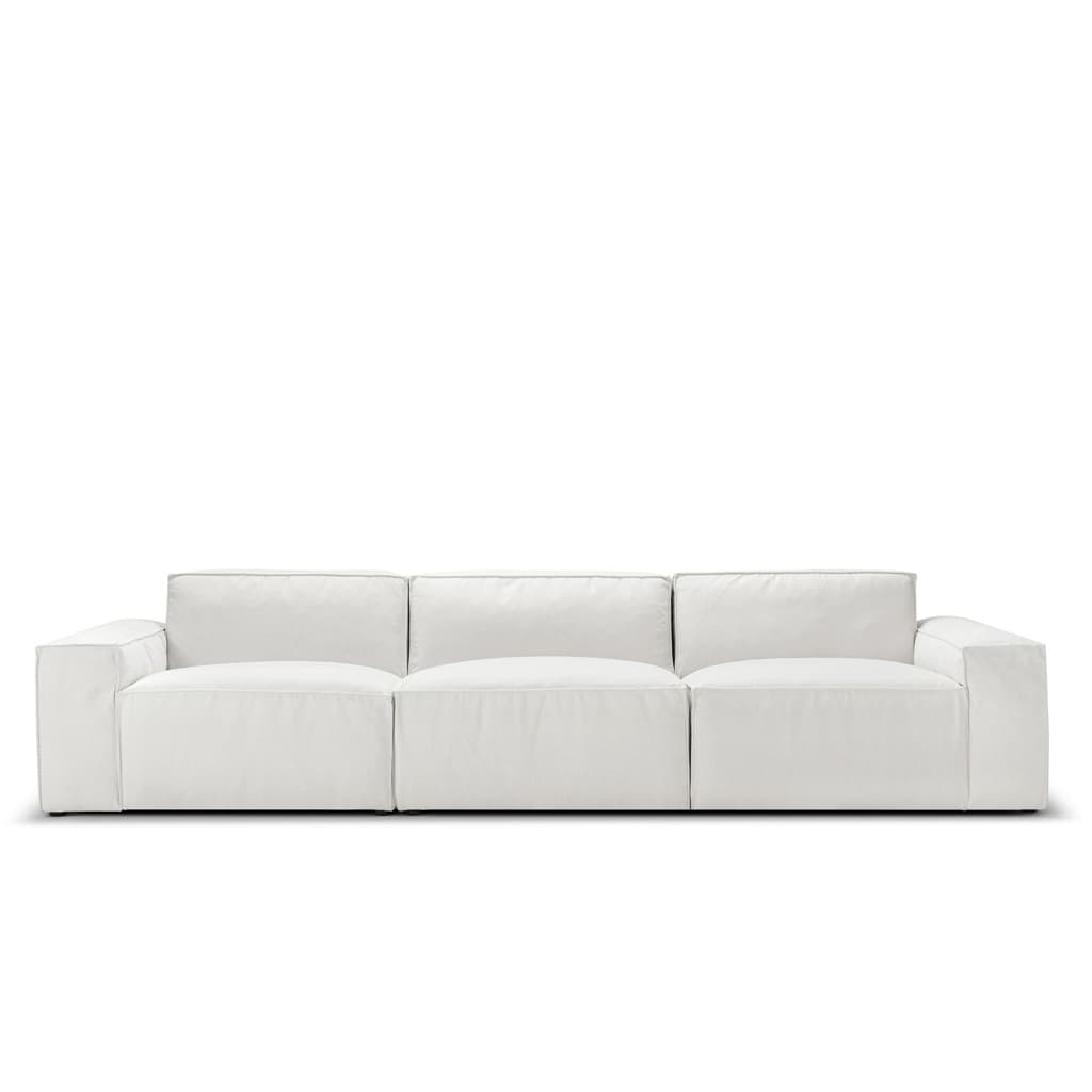 Oasis Modular Block Sofa features a modern silhouette for supportive comfort. Comprising chunky, block-like cushions, it is crafted to be adaptable, allowing for separation, stacking, and versatile arrangements.