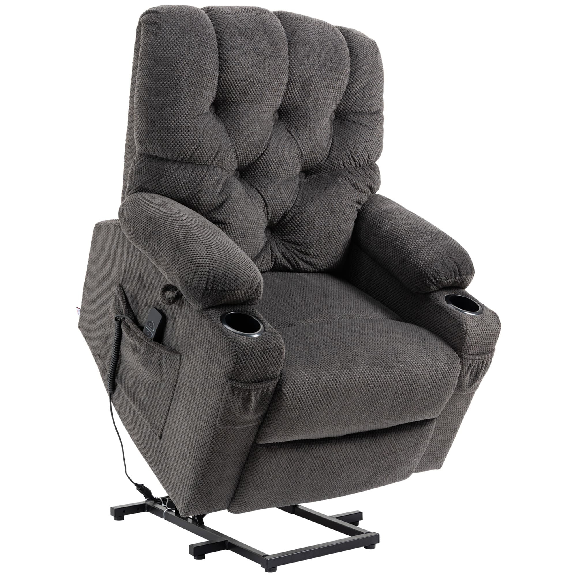 HOMCOM Power Lift Chair, Fabric Tufted Recliner Sofa Chair for Elderly with Cup Holders, Remote Control, and Side Pockets, Dark Grey