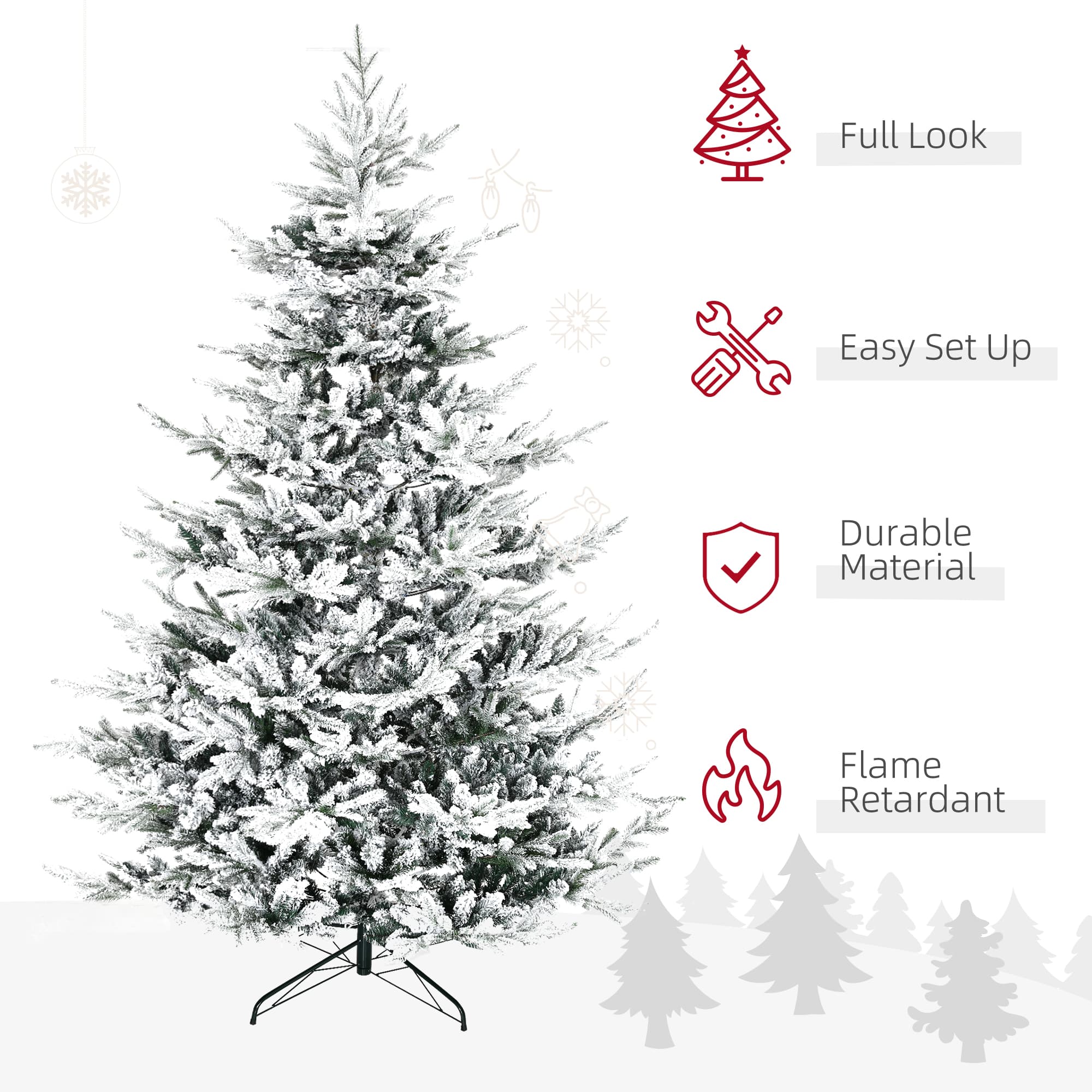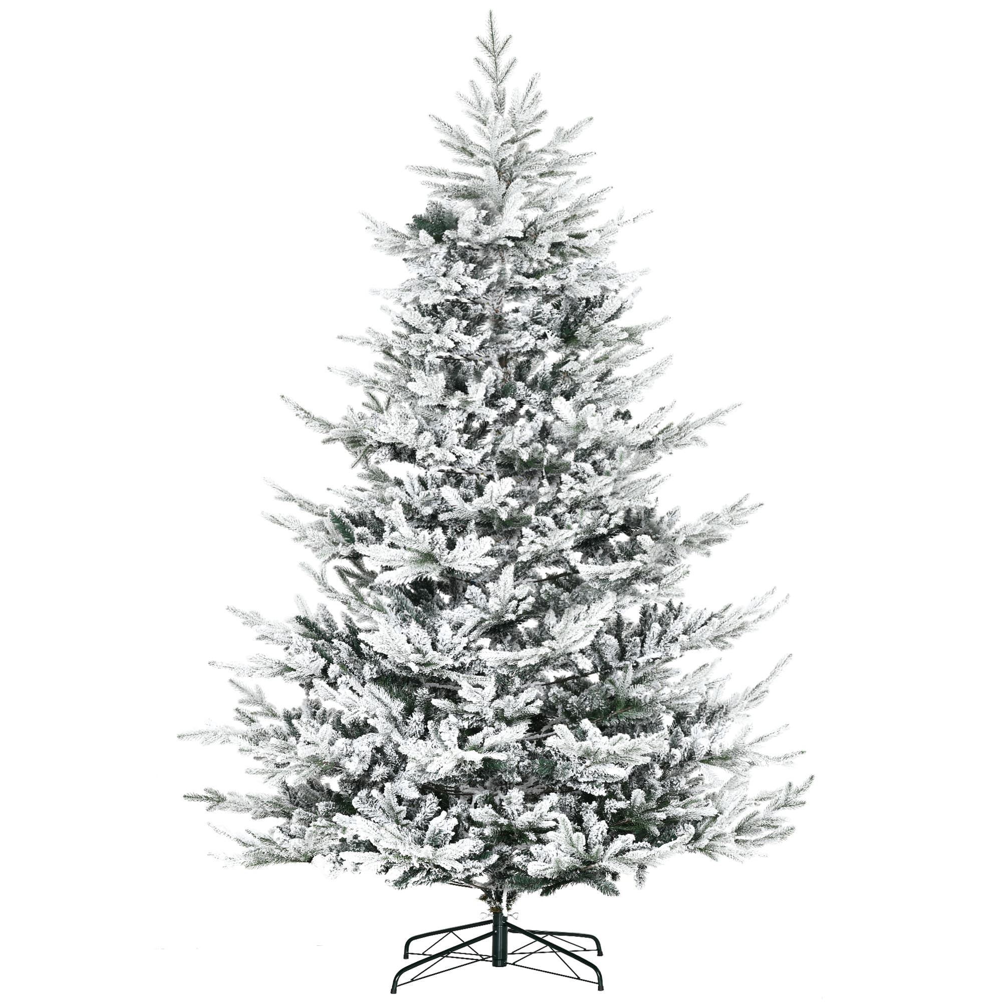 HOMCOM 8ft Pine Snow Flocked Artificial Christmas Tree with 1479 Realistic Cedar Branches, Auto Open, Home Holiday Decoration, Green
