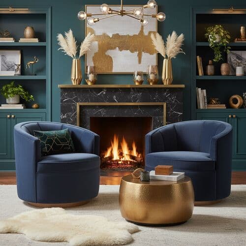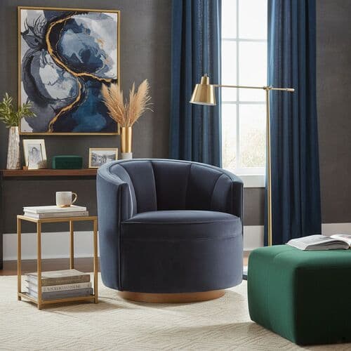Jackie Swivel Chair - Velvet - Kim Salmela - Handcrafted | Rotating Chair, Pivot Chair, Spin Chair - Blue - Sturdy, Comfortable