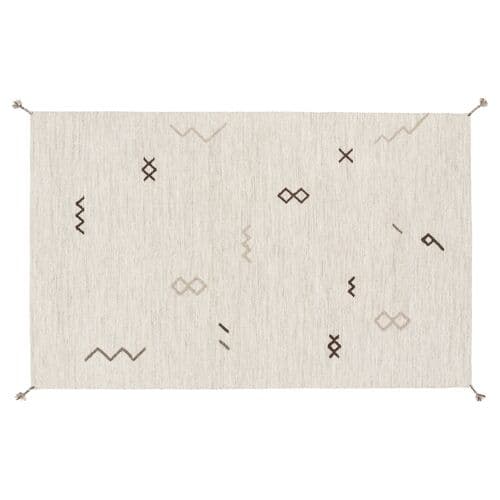 Crafted from premium wool, this handwoven rug features tribal motifs that add movement and energy to its neutral background. Using a rug pad is recommended to prolong its life and keep it in place securely.
