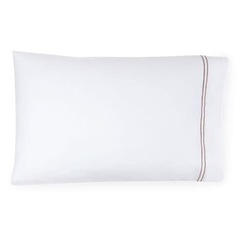 Crafted from Italian-woven cotton percale, these pillowcases feature a smooth and crisp texture. They are adorned with two delicate rows of satin-stitch embroidery, offering a tailored look.
