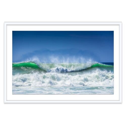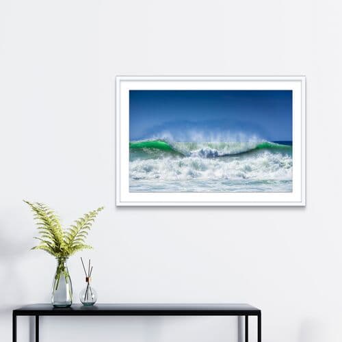 First seen at One Kings Lane, this dynamic image by James Ogilvy portrays a rolling wave. Printed on premium paper, it is mounted on a white mat and framed, ready for hanging. Hailing from Scotland, Ogilvy cherishes the serene moments around dawn when nature awakes. These times foster a near-meditative state with heightened sensitivity to changes in light. His work is drawn to water, a mirror for the sky, a creator of mist, and a beacon for birds. His goal is to offer spiritual refreshment through serene imagery.