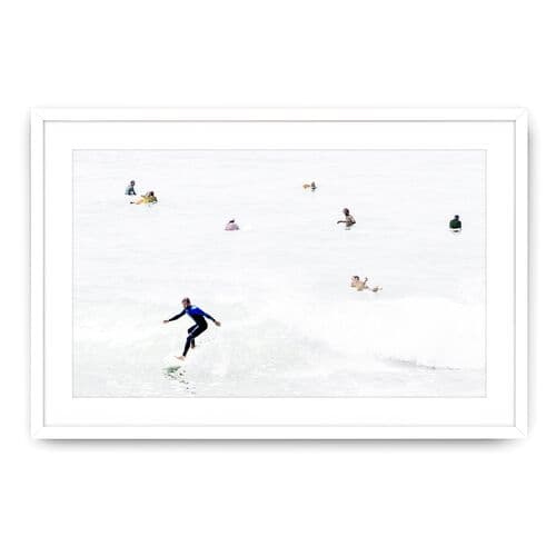 Afternoon Surf by Judith Gigliotti evokes coastal nostalgia, showcased on photo paper and set in a wooden frame, ready for display. Gigliotti, born in Chicago, studied at various prestigious institutions and transitioned from other creative fields to photography. Presently, she resides in Santa Monica, CA, relishing a life enriched with family and a vibrant garden.