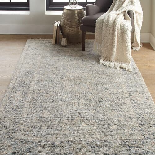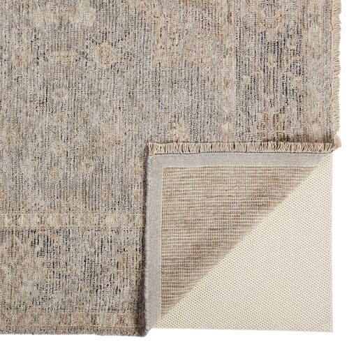 Handwoven with classic Persian motifs, this rug mimics an heirloom with a pointillist touch. It is suggested to use a rug pad for enhanced grip and to prevent slipping.