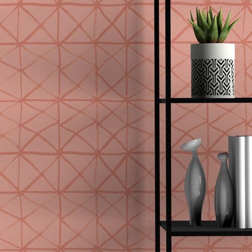 Susan Hable - Painted Grid Wallpaper - Malibu - Soicher Marin - Pink | Designer Wall Covering - Smooth, Stain-Resistant, Durable